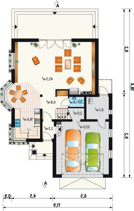 Яскравий проект заміського котеджу з гаражем на 2 машини 4M3758b