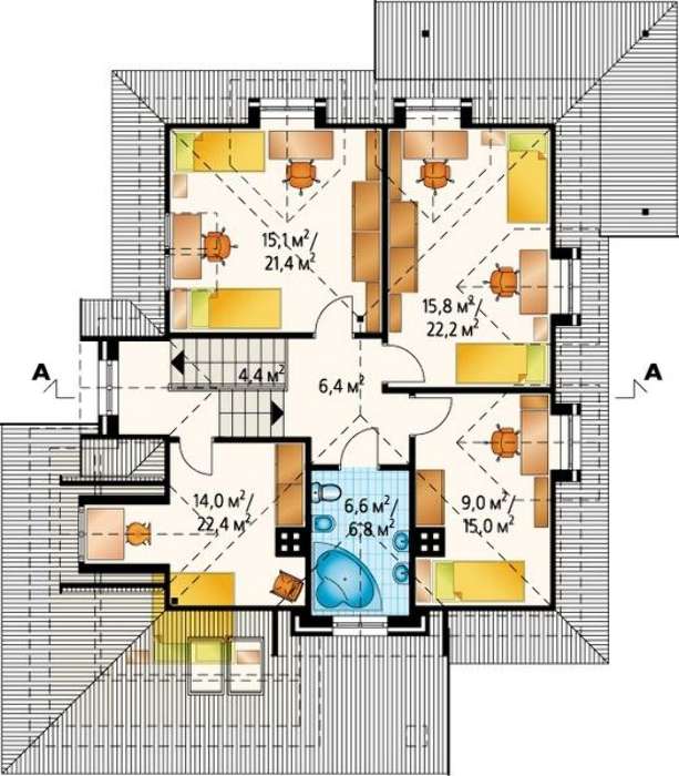 | Кут нахилу покрівлі: | 42°, 29 ° |