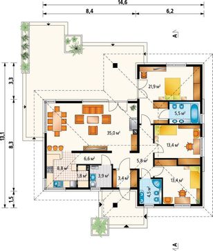 Затишний 1 поверховий будинок Т-подібної форми 4M3317