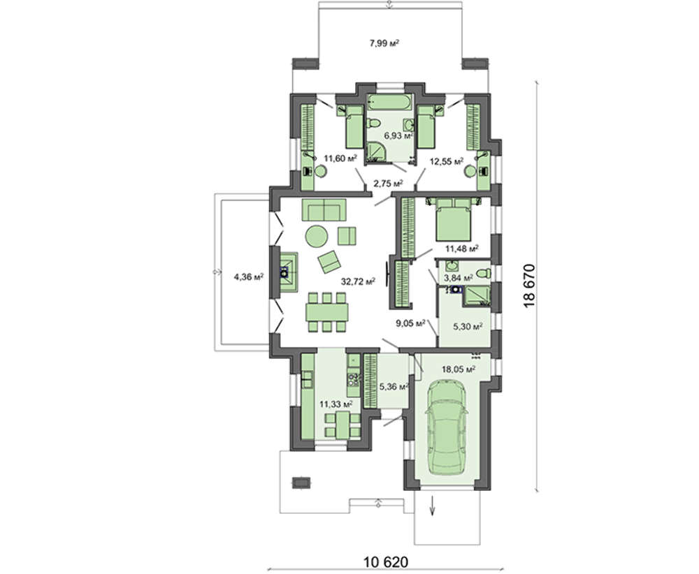 Всі наші типові проекти враховують основні потреби середньостатистичної сім'ї, щоправда, в такому випадку говорити про індивідуальність вашого майбутнього житла не доводиться. Але, щоб будинок виглядав оригінально і повністю відповідав вашим вимогам, ми готові внести зміни в проект.