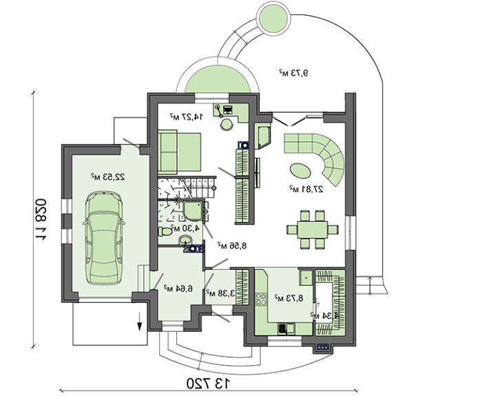 • 4M401 Житловий будинок з напівкруглими балконами і верандою