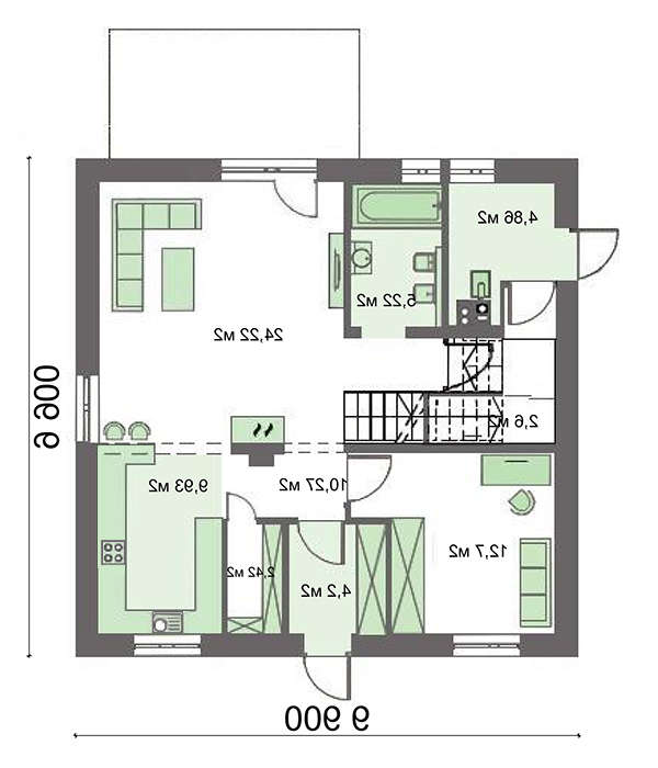 • Перший поверх: 76.42 м2